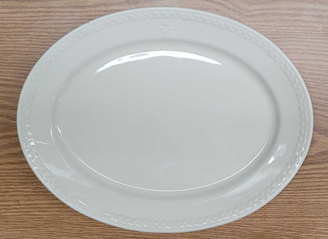 American Home Pottery was made with a continuous rope embossing towards the edge and a small embossed star. Each piece was marked with a Longaberger backstamp.