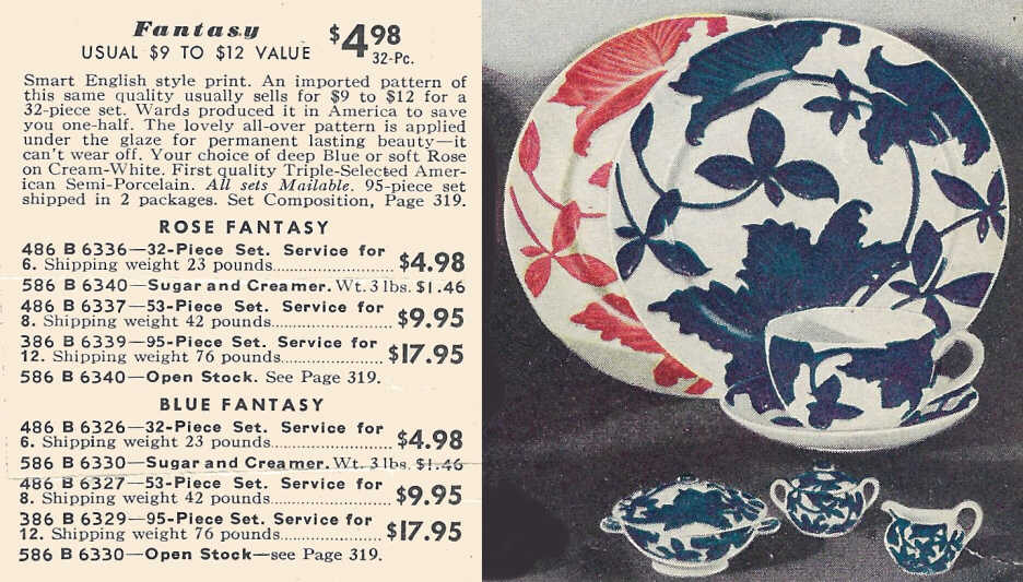 Montgomery Wards catalog page with Blue and Rose Fantasy. |