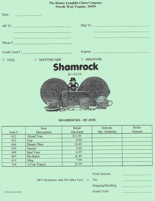 Shamrock (treatment number BC-8538) was made on sea mist Fiesta®. It was an outlet exclusive, starting in 2001.