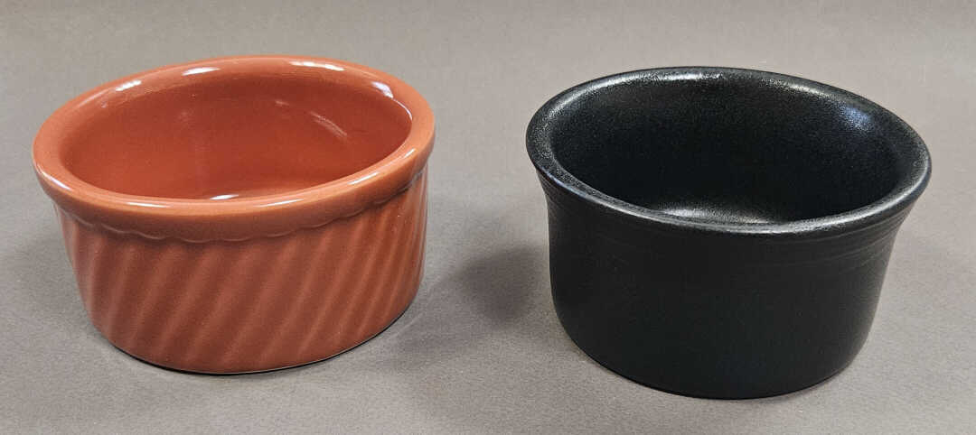 From 1997 to 2019, the factory dipped several of their restaurant ware shapes in Fiesta® glazes for their Fiesta® Mates and Colorations lines. Below are a few examples of ramekins and bouillons, along with some from the Hall China Company.