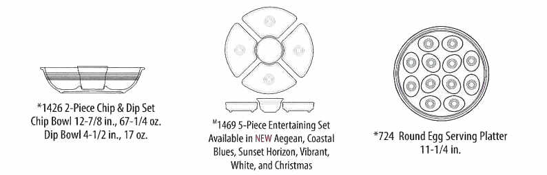 Chip and dip set, entertaining set, and egg platter from a 2025 factory cut sheet |
