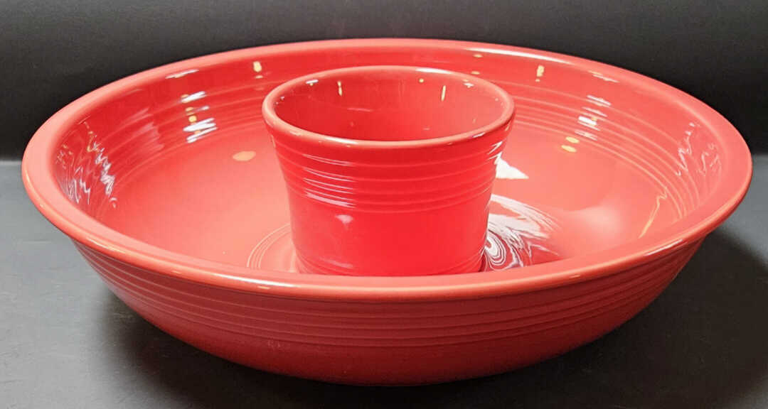 On February 9, 2001, the Fiesta® Possibility Plate was modeled. The idea was the plate could be used as a luncheon plate, salad plate, or take a bowl in the center and transform into a chip and dip set, or serve as a liner for a soup bowl.