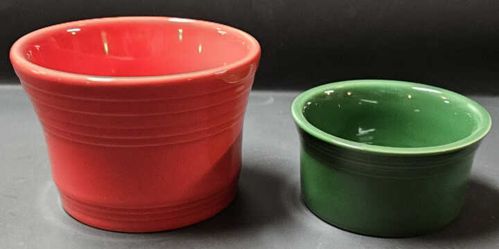 Comparison of the dip bowl in scarlet and a ramekin in jade |