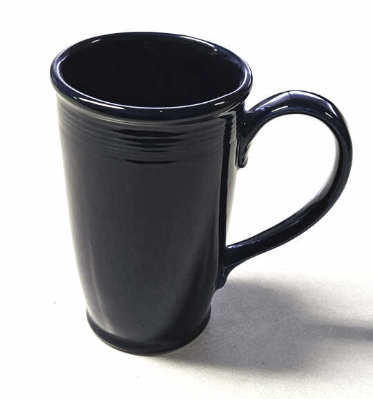 A special latte mug with large handle was modled on October 21, 1998. It never went into production, however, samples were made in several glazes including periwinkle and cobalt.