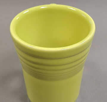The Tom & Jerry mug was added to the Fiesta line in the summer of 1936. It was made until the line was restyled in 1969 and in all eleven glazes: red, yellow, light green, blue, old ivory, turquoise, rose, forest green, chartreuse, gray, and medium green. Tom & Jerry mugs were often marked with a backstamp under the glaze.