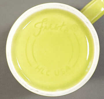Three mugs were selected for the Mates/Colorations assortment: the Denver mug, Tower mug, and Irish coffee mug. While these can be considered the main three, there have been other restaurant ware shape mugs made in Fietsa glazes through the years. They either have embossed HLC logos or an underglaze backstamp.