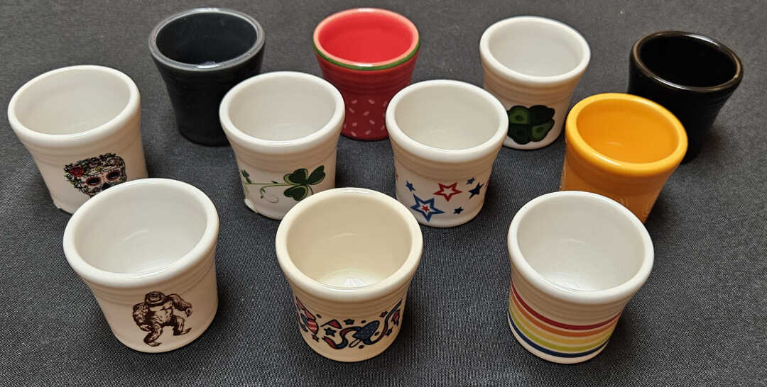 Fiesta® shot glasses with the dancing lady decal, made for the FTCCO.
