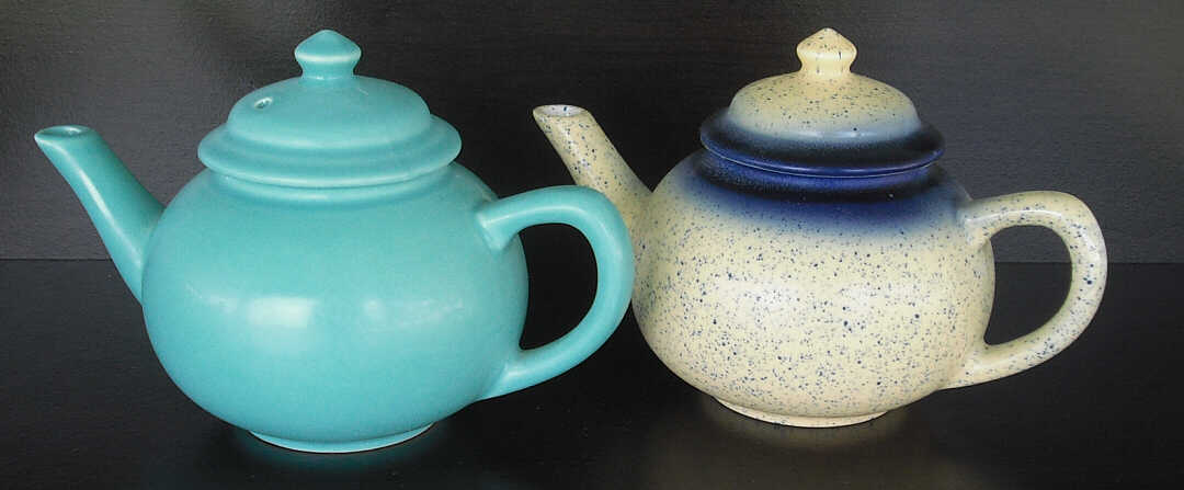 Restyled teapots showing their smaller openings and redesigned lid flanges which made for a better fit |