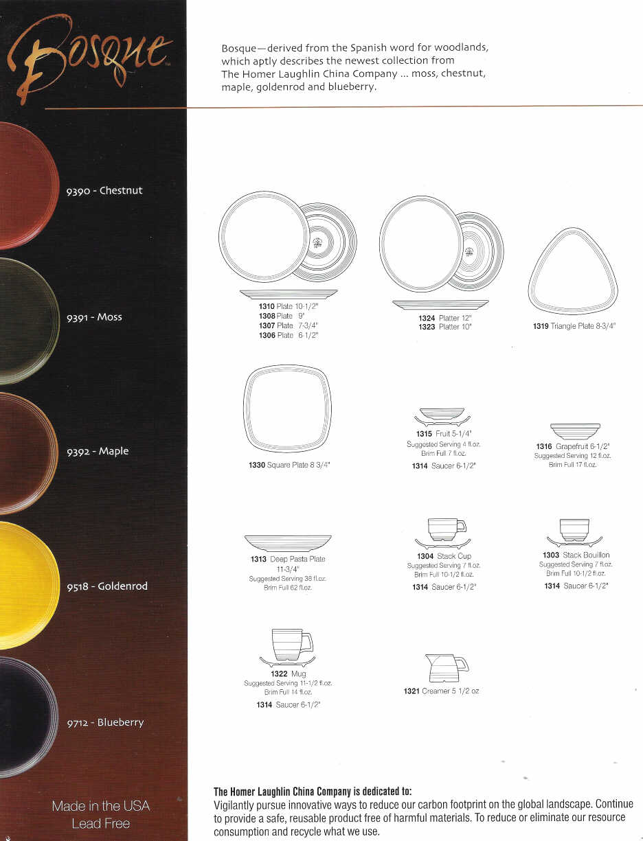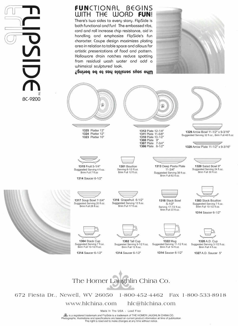 The Flipside shape was developed between 2006 and 2007. It was offered in a plain glaze or one of the five Bosque colors.