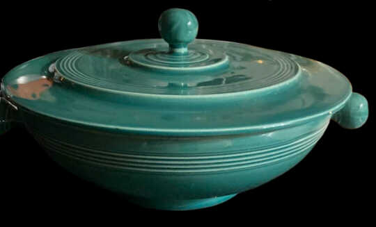 In 1959, the color line up changed for the last time when rose, gray, forest green, and chartreuse were dropped. Harlequin yellow and turquoise continued production along with a new green glaze, called "medium green" by collectors. Fiesta red was reintroduced at this time. More pieces were discontinued when this color changed occurred and are hard to find in medium green: the service water jug, 22-oz jug, and novelty creamer to name a few.