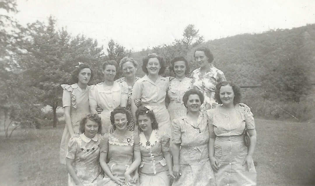 Dated 1949. Nadine Dobson, Dollie Heath, Bell Massey, Grace Riser, Angie Pittman, Edna (White) Pinney, Pearl Ash, G. McCune, Clara (Smith) Cunningham, Edith Gallo, and Relva Griffin. |