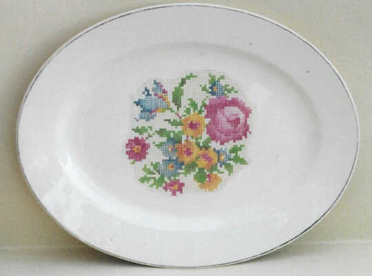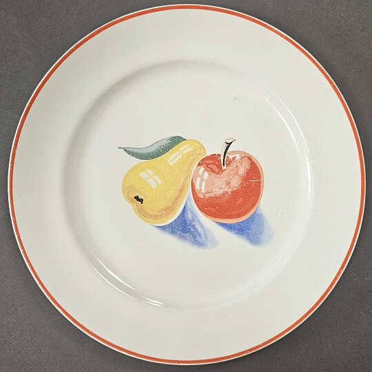 In any case, at least four Harker decorations have been found: Red Apple, a.k.a. Orchard, Modern Tulip, Petit Point, and Sweetheart Rose. All four of these treatments were used extensively by Harker Pottery.