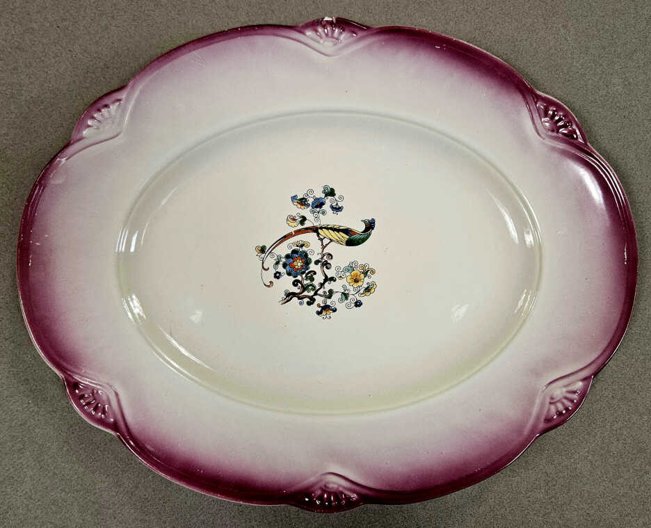 This decal was used on specialty ware with wash trims in various colors in the 1920s and 1930s.