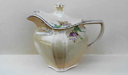 Covered batter jug in Sunshine glaze with pattern 144, "Gold Tulips" |