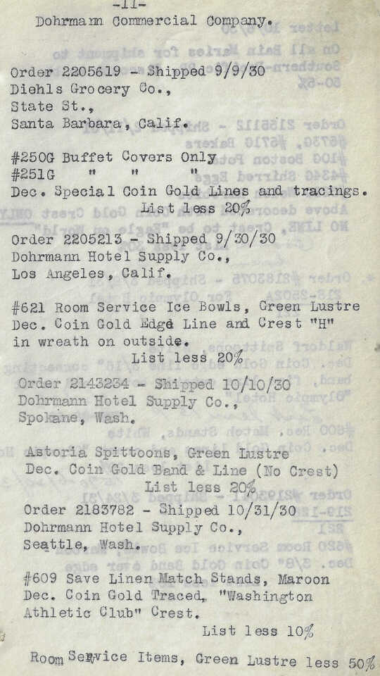 Hall China order records from the late 1920s to late 1930s, C - D.