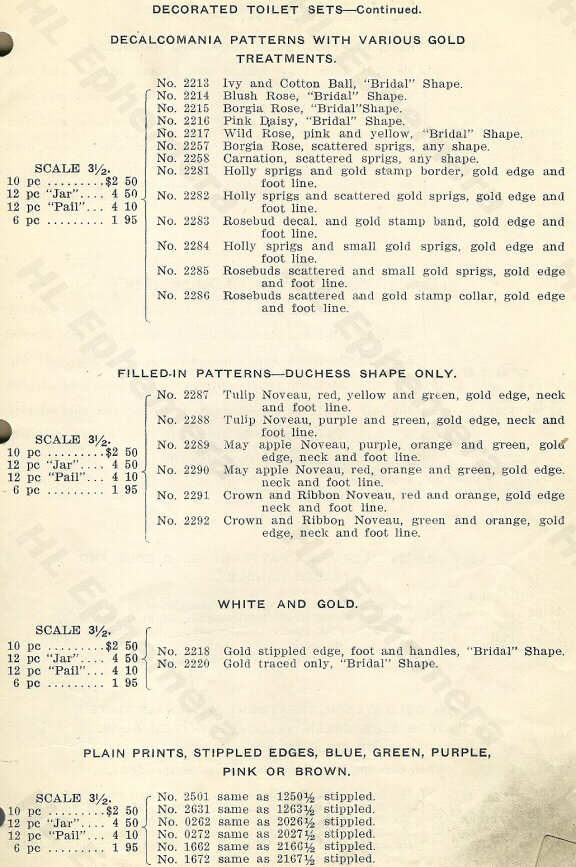 1906 HLC Price Scale Catalog