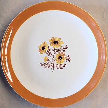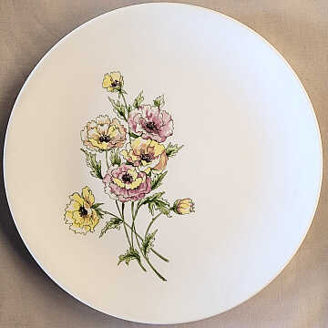 The 10" plates on this page were decorated with patterns that did not go into production and range from 1960 to 1965. Most of them are on the Rhythm coupe shape, though a small batch is shown at the bottom on Cavalier.