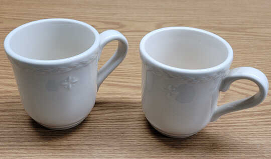 American Home Pottery was made with a continuous rope embossing towards the edge and a small embossed star. Each piece was marked with a Longaberger backstamp.