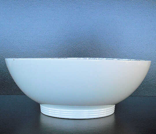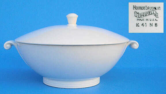 Andover was unlike other HLC products in that each piece was given a cylindrical pedestal foot with rings. The modeling log notes the line was released into production on June 26, 1941. Two more items were modeled at the end of June; the nappy and a "shallow" bowl.