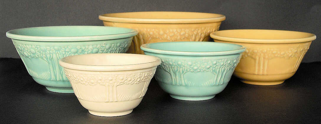 The Appletree bowls were a set of nested mixing bowls made by Homer Laughlin during the 1930s and into the early 1940s. They were designed by art director, Frederick Rhead.