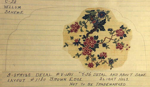 For the next two months work proceeded on developing decals and platinum stamps on the new shape. It was during this time the very popular English Garden (C-4) treatment was designed.