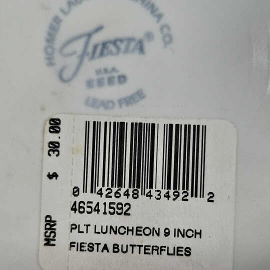 Fiesta® Butterflies (treatment number 41592) was made on white Fiesta® luncheon plates.