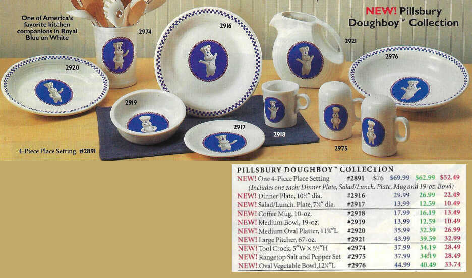 The Pillsbury Doughboy on white Fiesta® first appered in the 2004 Betty Crocker catalog. The pattern was discontinued in 2005.