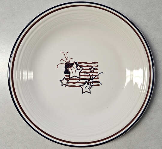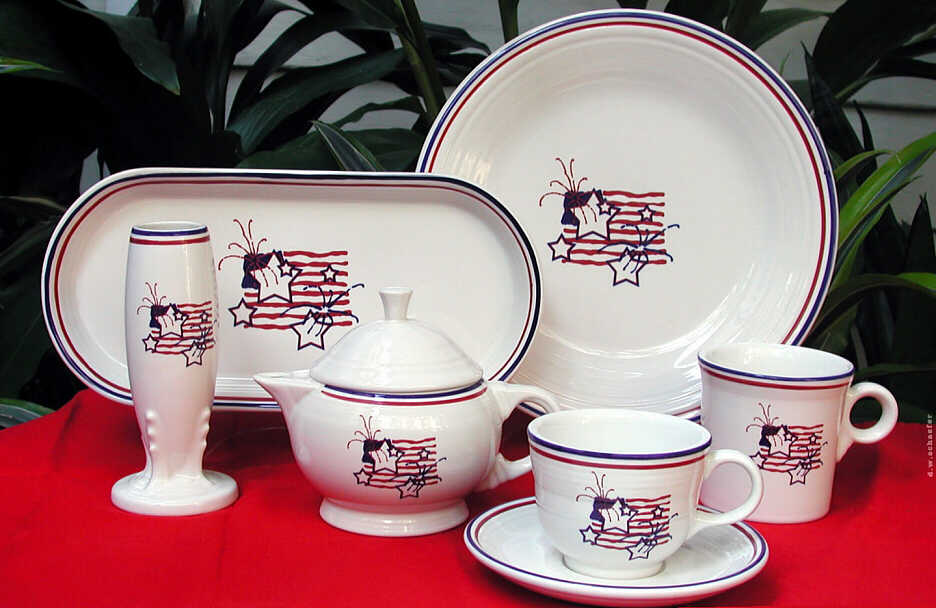 Stars and Stripes (treatment number BC-8595) was made on white Fiesta® with red and blue trim. The pattern was introduced in 2002 and discontinued five years later.