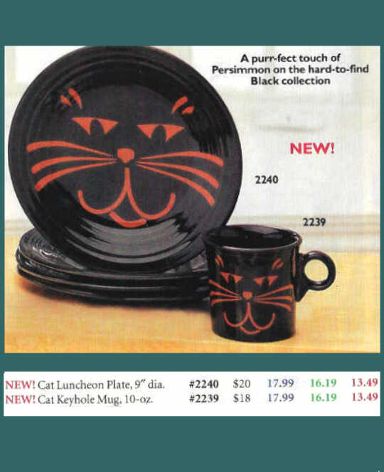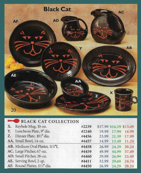 Black Cat was first offered in Betty Crocker catalogs in 2004. The assrotment consisted of just two pieces: the classic rim luncheon plate and ring handled mug.