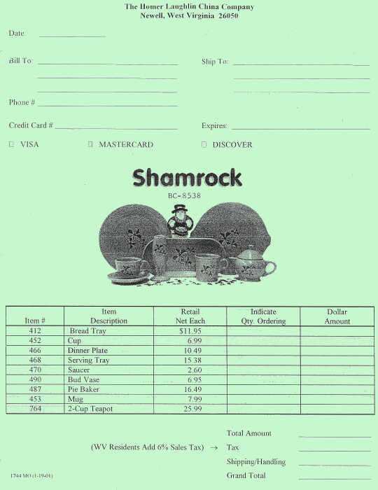 The assortment consisted of nine items as listed on the 2001 order form below. A year later, the serving tray was taken off the form since the piece itself was discontinued.