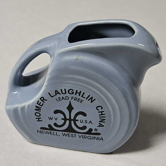 Towards the end of 2006, the "I Love Fiesta®" pattern was applied to mini disc pitchers in white, sunflower, and periwinkle. Each was assigned a treatment number: white BC-8464, sunflower BC-8465, and periwinkle BC-8466.