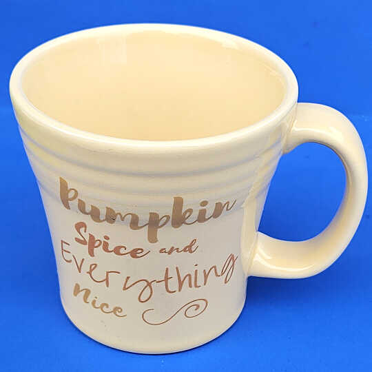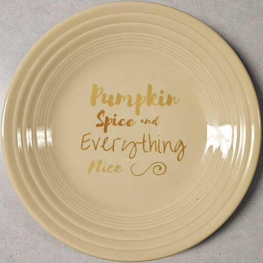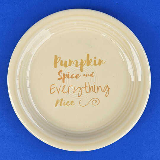 The decal was made up of gold and copper metalic colors and was applied to ivory Fiesta®.