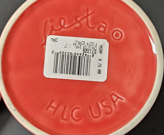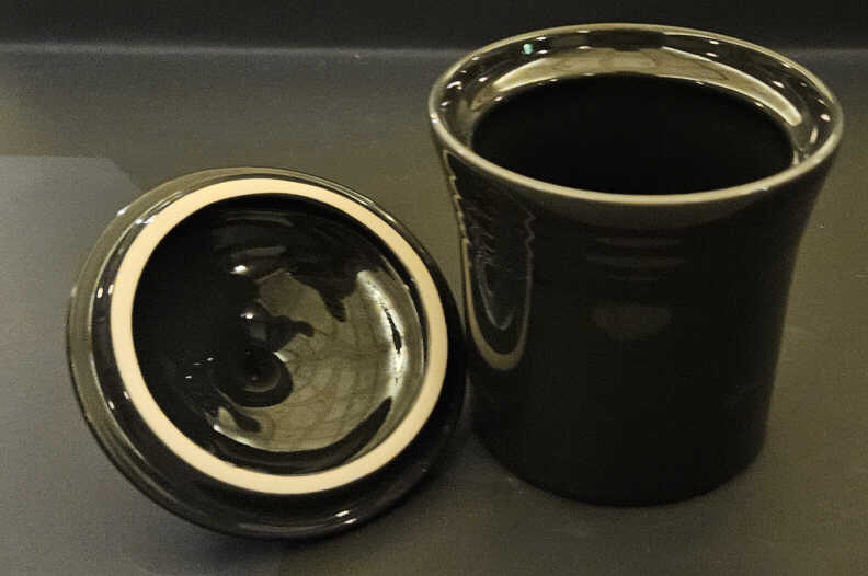 Fiesta® canisters were developed in the summer of 2003 and were made at Hall China in East Liverpool, Ohio. They first appeared in Betty Crocker's fall 2004 catalog and could be purchased as single color three-piece sets or individually. Lids were fitted with a rubber gasket, which formed a tight seal with the bases.