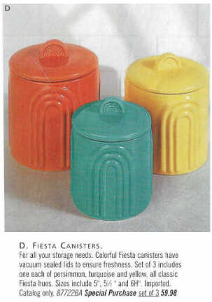 Bloomingdales offered a "Fiesta" three-piece canister set in their 1997 catalog, however, they were not made by the factory.