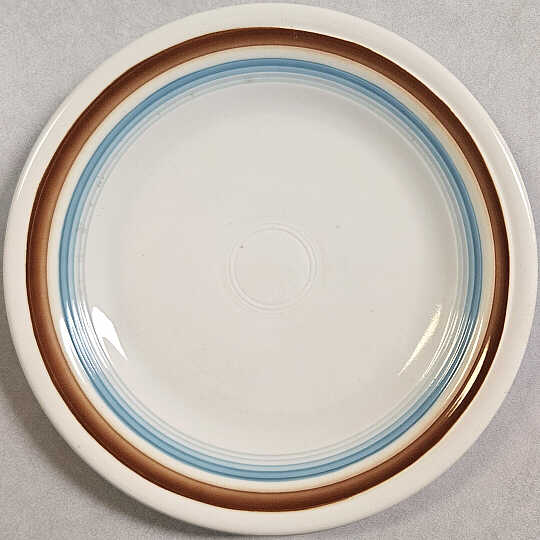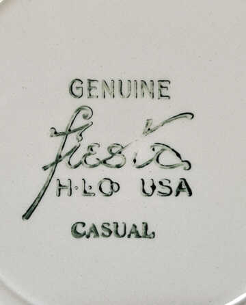 Four pieces of Fiesta can be found with the stencil treatments: 10" plate, 7" plate, saucer, and platter. The 5 ½" fruit, 8 ½" nappy, teacup, covered sugar, and creamer were glazed in the appropriate Fiesta® color and completed the Fiesta® Casual sets.