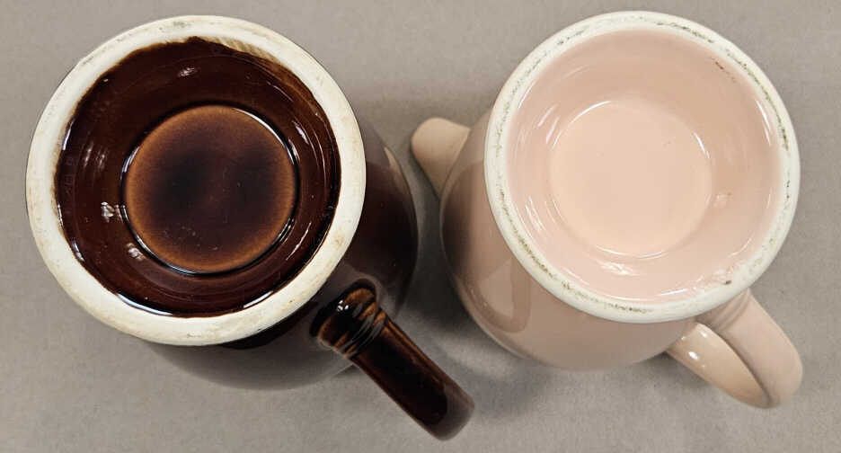 Amberstone coffee server and Ironstone-style coffee server in apricot with no marks |
