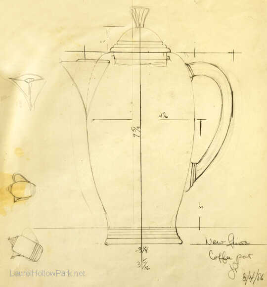 Jonathan Parry's sketch for the coffee server, dated March 4, 1986 |