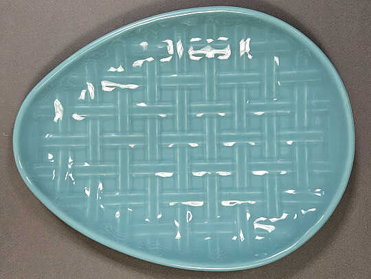 The egg shape plate with its weave embossing was modeled on May 16, 2022. It was introduced in 2023 and given the product item number 1538.