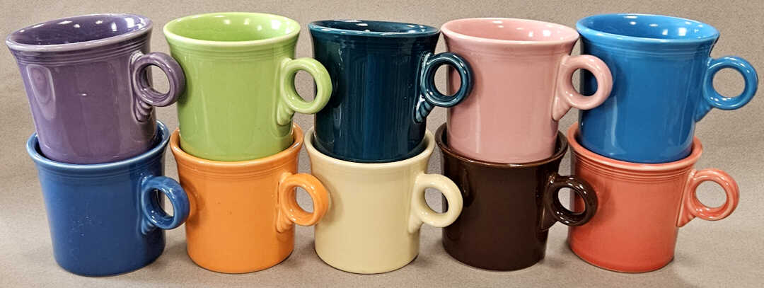 Dignity mugs were made in white, but some were glazed in Fiesta® colors.