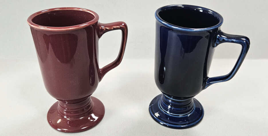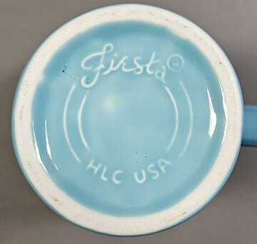Three mugs were selected for the Mates/Colorations assortment: the Denver mug, Tower mug, and Irish coffee mug. While these can be considered the main three, there have been other restaurant ware shape mugs made in Fietsa glazes through the years. They either have embossed HLC logos or an underglaze backstamp.