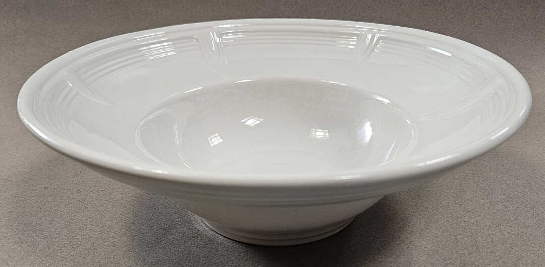 The signature bowl was inspired by the bell-shaped coronet bowls made at the factory in Newell and the Hall China Company in East Liverpool, Ohio. Coronet bowls came in two sizes: 10" (item 31031) and 7 ⅞" (item 31106). The Fiesta® signature bowl was made by adding the familiar rings and chevrons to the 10" coronet bowl.