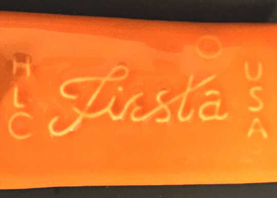 The Fiesta® spoon rest was modeled on October 1, 1999, and made its first appearance in the factory's cut sheet dated 2000. It was modeled by Joseph Geisse. His initials "JG" can be seen under the round portion of the spoon rest.