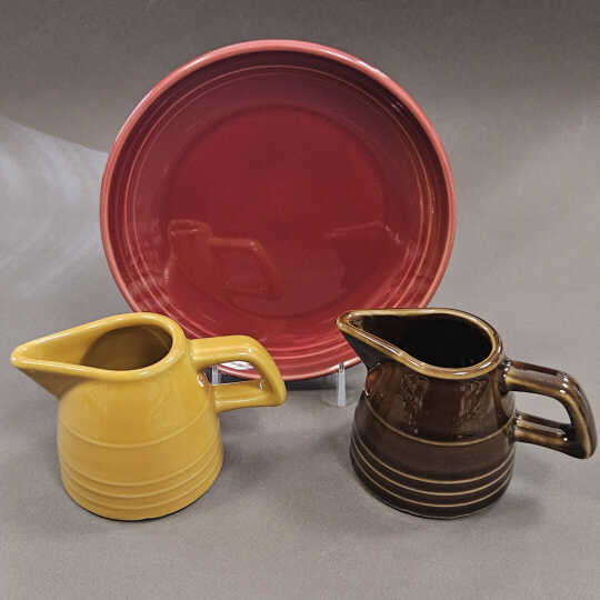 Flipside 6 ½" plate in chestnut, creamers in goldenrod and maple |