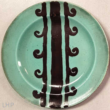 The following gallery of images shows test plates made at Homer Laughlin in the 1930s. They were created under the direction of Frederick Rhead and make use of Wells (round) and Jade (square) 6" plates.