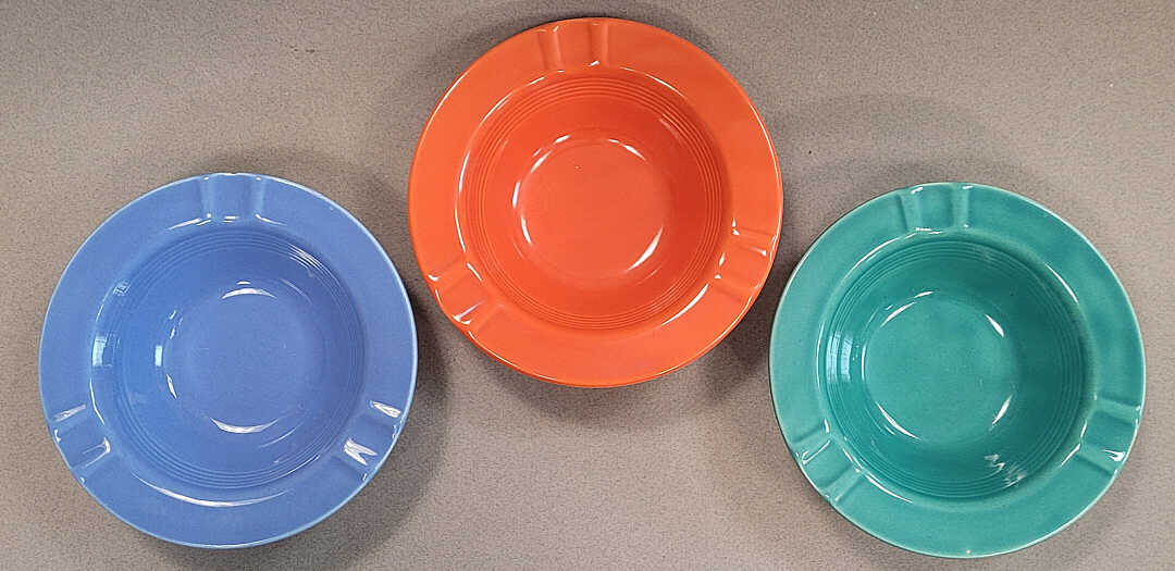 Fiesta red, or tangerine, was no longer offered in 1943. It contained uranium and the government seized control of the element due to W.W.II. After the loss of Fiesta red, Harlequin's color assortment was reduced to: Harlequin yellow, Harlequin blue, turquoise, rose, and light green.