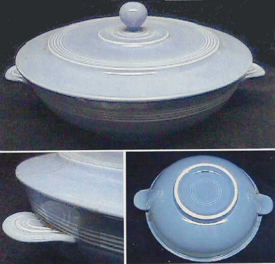 The casserole was the next piece made. At this point, the style of hollowware still had not been determined. First came the convex casserole with a ball shaped handles and finials followed by the straight sided version. The convex sugar was the next item modeled. On August 13, Rhead commented on the progression of the hollowware: Trouble with new casserole [convex shape]. Knobs are not finished properly. Working on a new type of lug and on the straight sided shape. Hollowware is proceeding slowly. Rhead did in fact make "lugs" for the convex casserole and at least one example is known to exist in the Harlequin blue (mauve) glaze. Another change was made to both casseroles with the