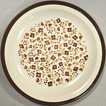 First made in 1971, Hearthside is a ringed shape. On flatware the rings are confined to the rim, and on hollowware they can be found towards the base. This is a typical line of 1970s dinnewrae with earth tone colors including gold, green, and brown. In one advertisement, color was the pitch for Hearthside: