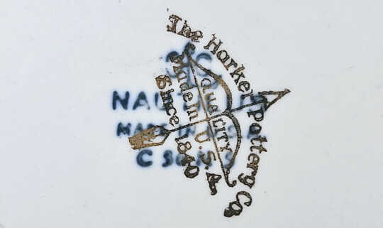 It is important to note: if a piece is marked with a Bakerite or other Harker stamp, but not with Homer Laughlin's mark, then it was made at Harker Pottery in Chester, West Virginia. Only wares with both stamps can be considered HLC-Harker pieces.
