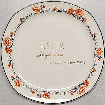 One of the few times Rhead altered Jade was in July 1932 when he noted remodeling the dinner plate to have a circular center. To date, only square wells have been found, so the circular version must not have been put into production.