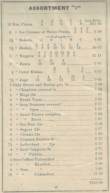 The motive power is a 13 by 34 cylinder automatic cut off engine, made by C. H. Brown & Co., of Fitchburgh, Mass. Tublar Boiler 17 feet long, 48 inches diameter, made at Worcester, Mass. Pulleys, hangers [snip] by Wm. Sellers & Co. of Philadelphia, Pa. Their special potting machinery includes many labor-saving devices hitherto unknown to potters, and was made to order by Watson, of Trenton, New Jersey, and S. S. Lane, of Beaver Falls. The leading modeler[*] in Irons-Stone China shapes of Staffordshire, England has modeled an entirely new and original shape for them which they call the Centennial, and is destined to become popular.